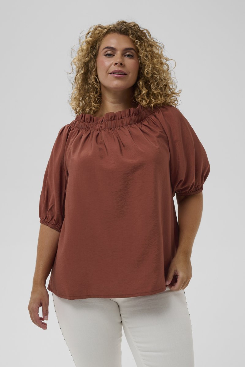 BluseErhältlich in den Größen 42–54Von der Marke Kaffe CurveHergestellt aus 87 % Viskose (LENZING™ ECOVERO™) und 13 % NylonLockere PassformFarbe: BraunUm den Größen-Ratgeber aufzurufen, klicken Sie hier