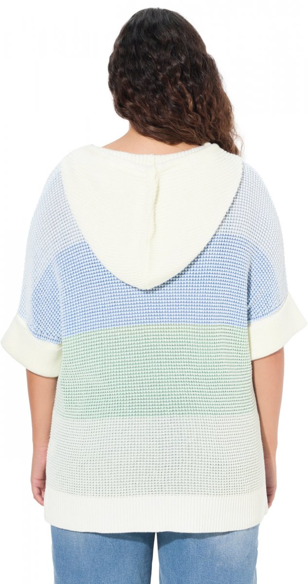 Größen-Ratgeber - Ulla Popken Block Stripe Hooded Short Sleeve Sweater Mint Green