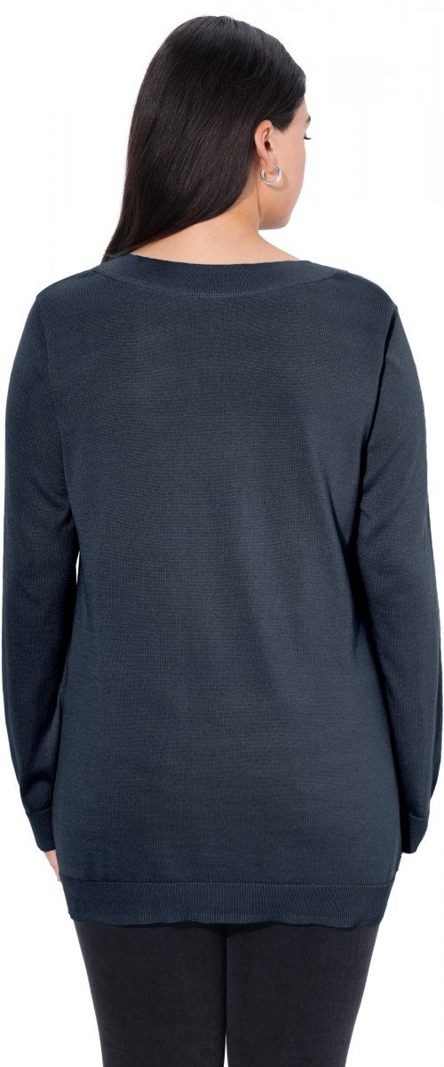 Ulla Popken Casual V-Neck Long Sleeve Sweater Navy Blue