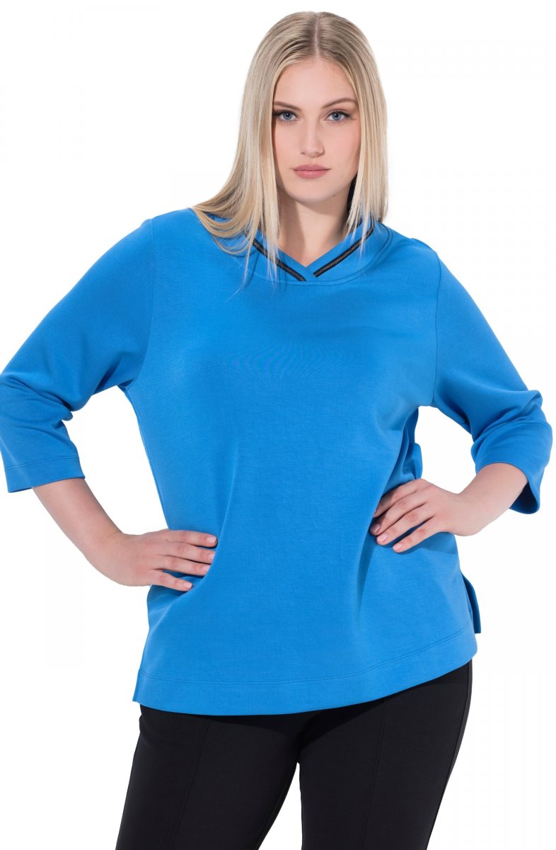 Größen-Ratgeber - Ulla Popken Classic Fit with Side Slits 3/4 Sleeve Sweatshirt Royal Blue