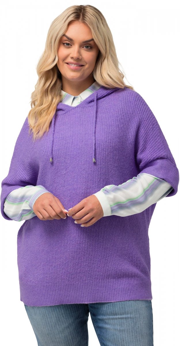 Ulla Popken Fuzzy Knit Short Sleeve Hoodie Pale Lilac