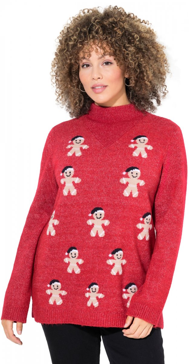 Ulla Popken Gingerbread Men Sweater Salsa Red