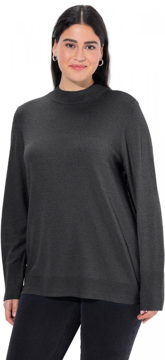 Größen-Ratgeber - Ulla Popken Long Sleeves Mock Turtleneck Sweater Charcoal Grey Melange