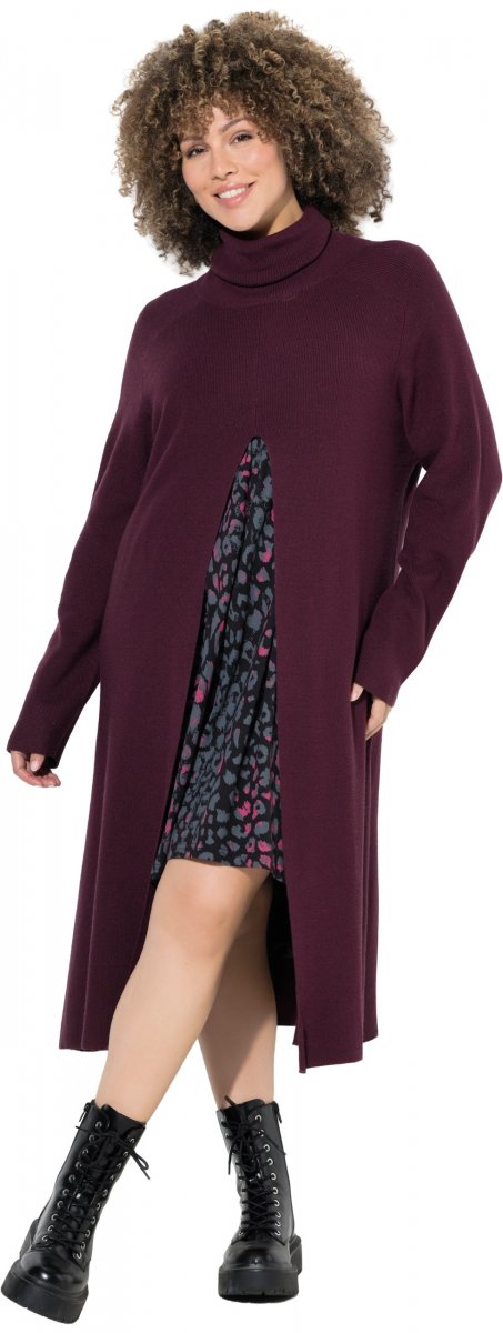 Größen-Ratgeber - Ulla Popken Long Turtleneck Duster Sweater Plum