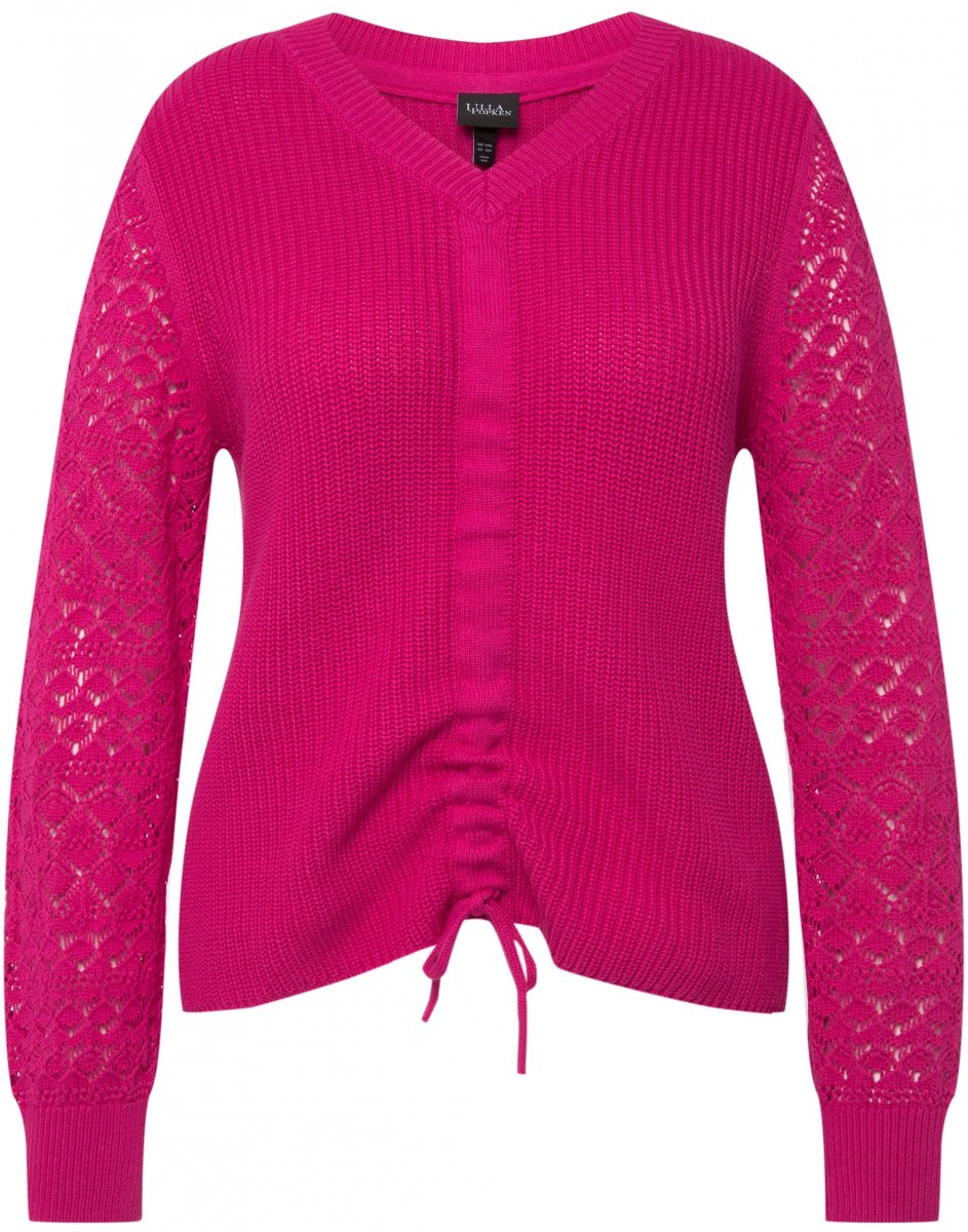 Größen-Ratgeber - Ulla Popken Shaker Stitch Cropped Gathered Sweater Fuchsia Pink