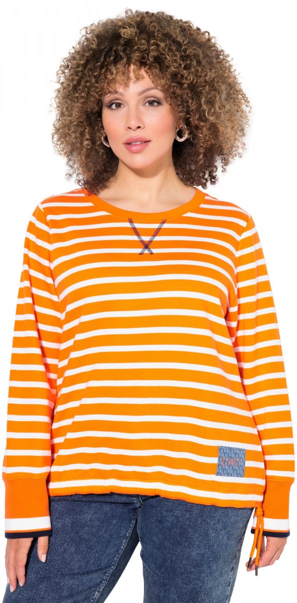 Größen-Ratgeber - Ulla Popken Striped Drawstring Hem Sweatshirt Orange
