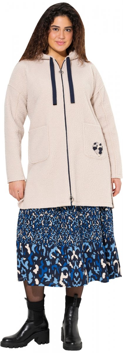 Größen-Ratgeber - Ulla Popken Oversized Teddy Plush Heart Detail Jacket Pebble Grey