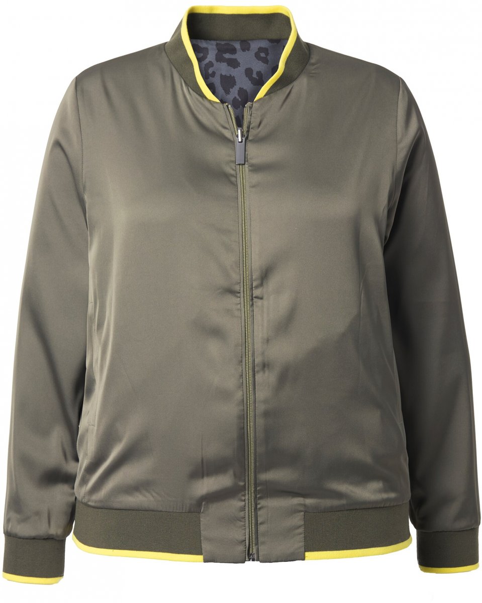 Größen-Ratgeber - Ulla Popken Reversible Leopard Print College Collar Jacket Olive Grey