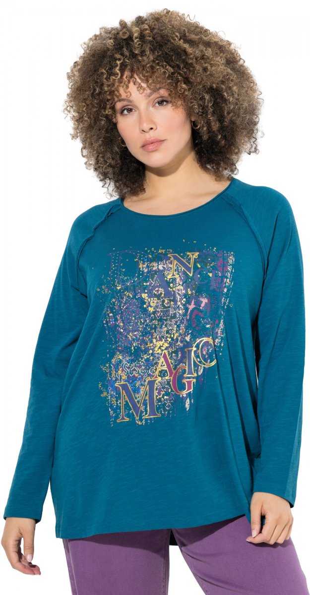 Ulla Popken Inverted Seam Long Sleeve Graphic Tee Teal