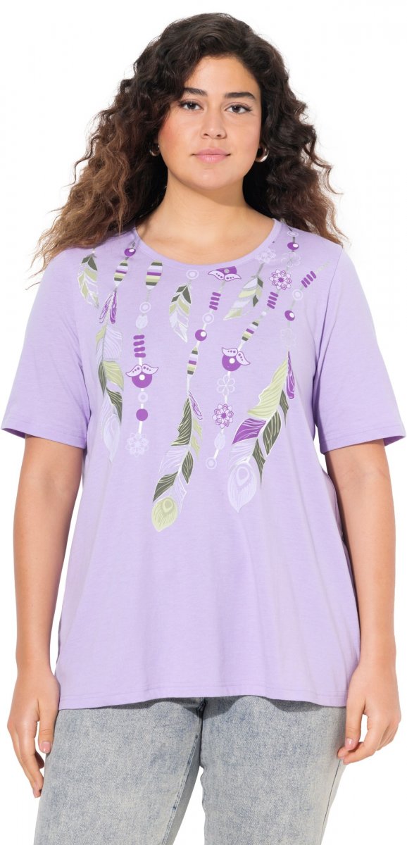 Größen-Ratgeber - Ulla Popken Metallic Feather Short Sleeve Graphic Tee Lavender