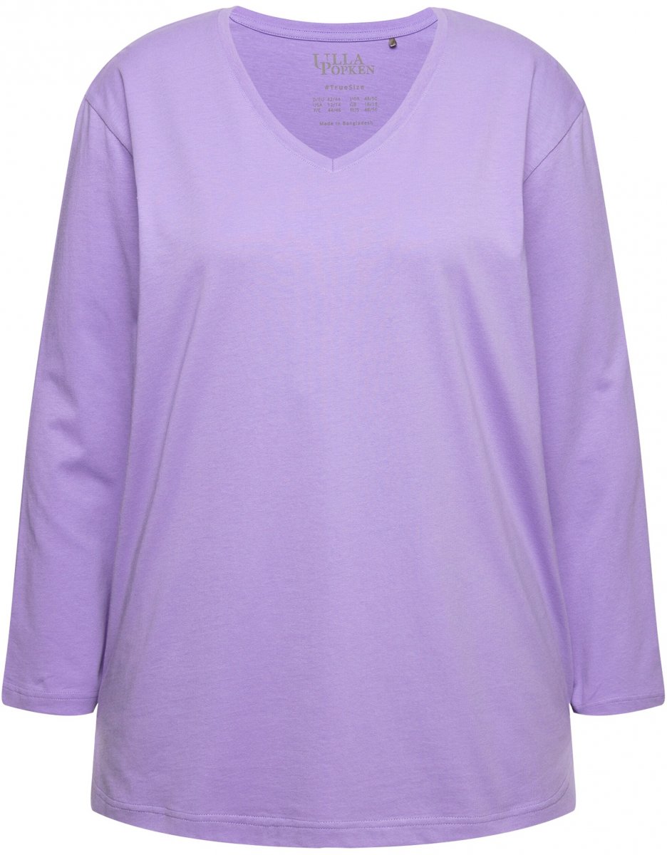 Größen-Ratgeber - Ulla Popken Back To Basics V-Neck Relaxed Fit Cotton Tee Pale Lilac