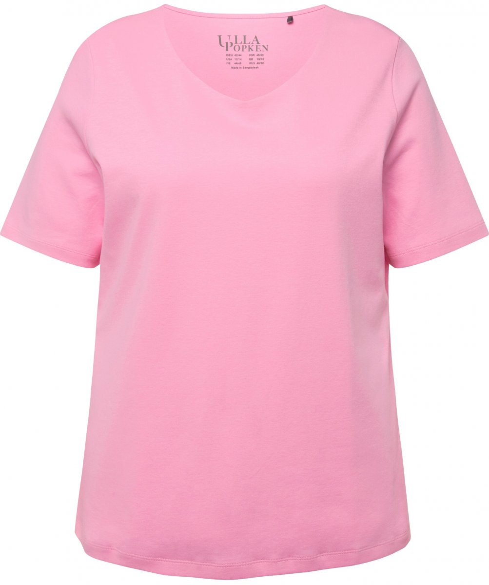 Größen-Ratgeber - Ulla Popken Double Layer Rounded V-Neck Slim Fit Tee Light Pink