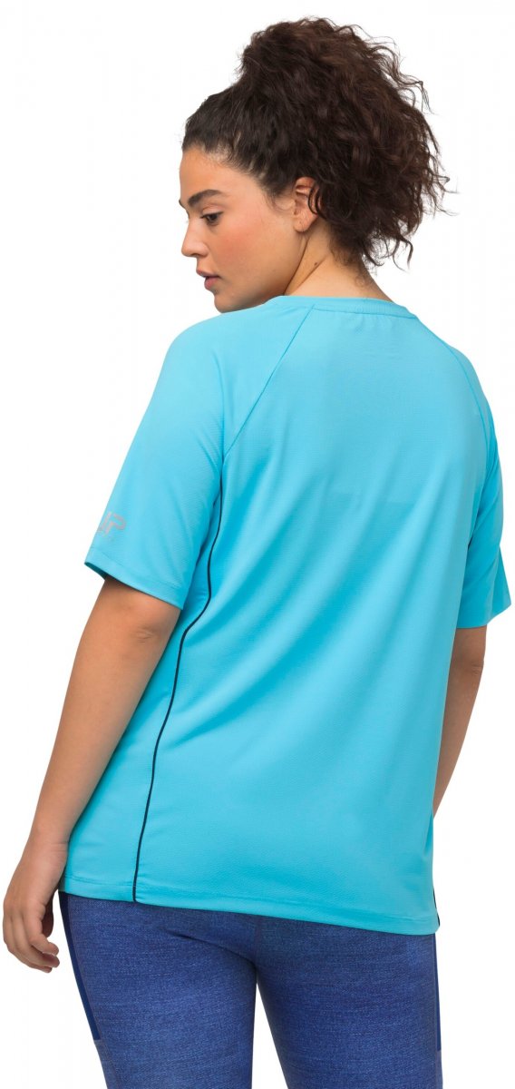 Ulla Popken Piping Accent Functional UVP 50+ Stretch Knit Top Bright Turquoise