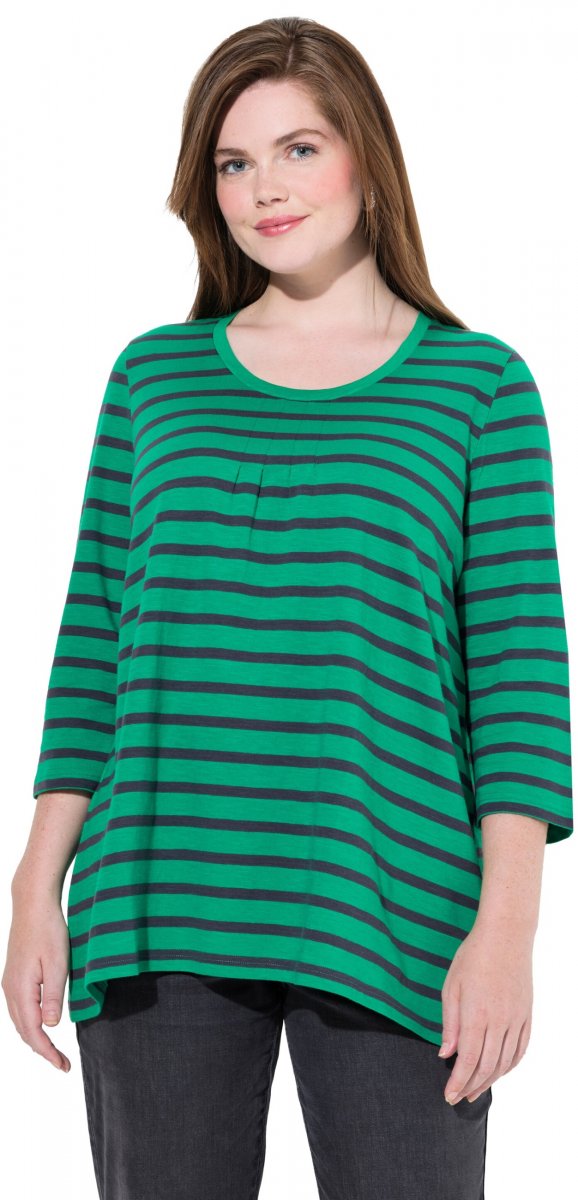 Ulla Popken Striped 3/4 Sleeve A-Line Tee Moss Green