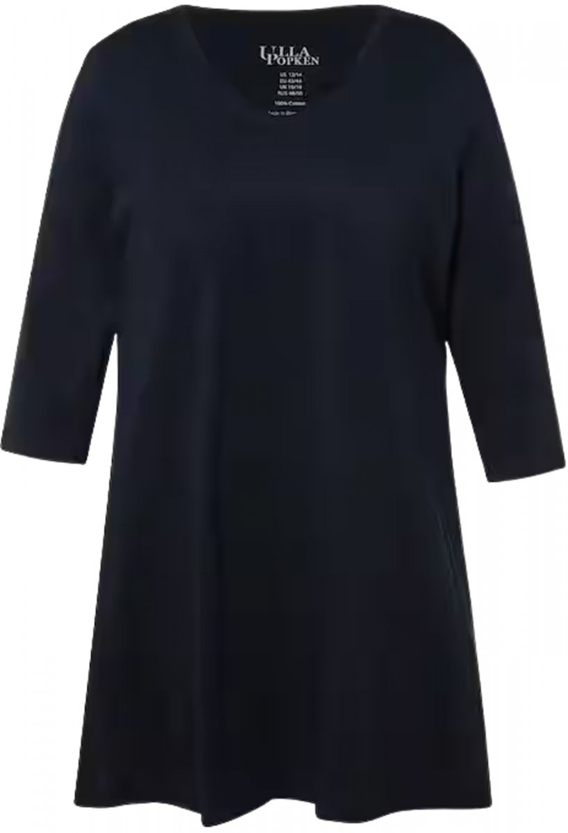 Ulla Popken V-Neck Swing A-line Hem Cotton Knit Tunic Navy