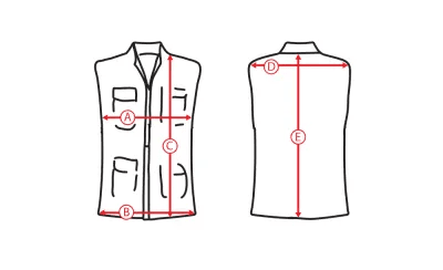 E - Die hintere Körperlänge wird von der Mitte des Kragens bis zur unteren Saumkante gemessen