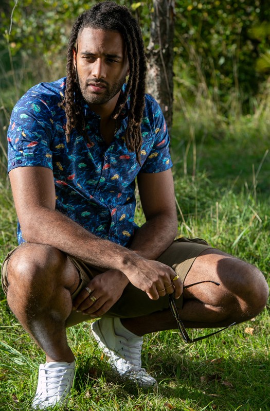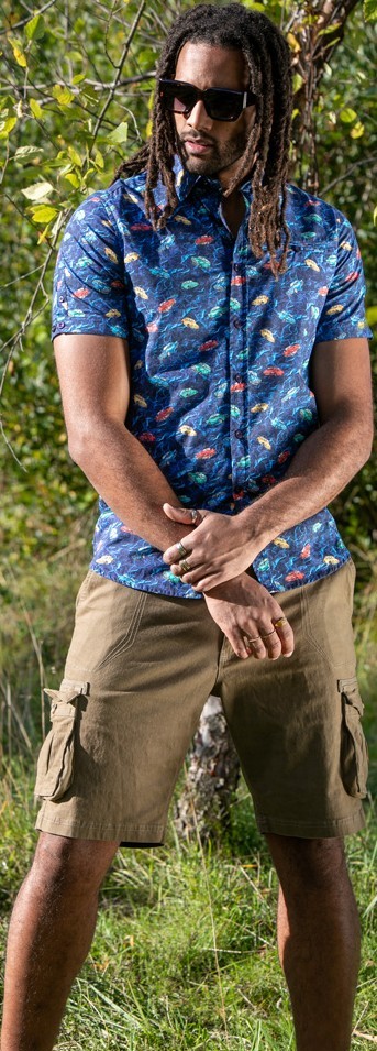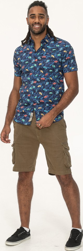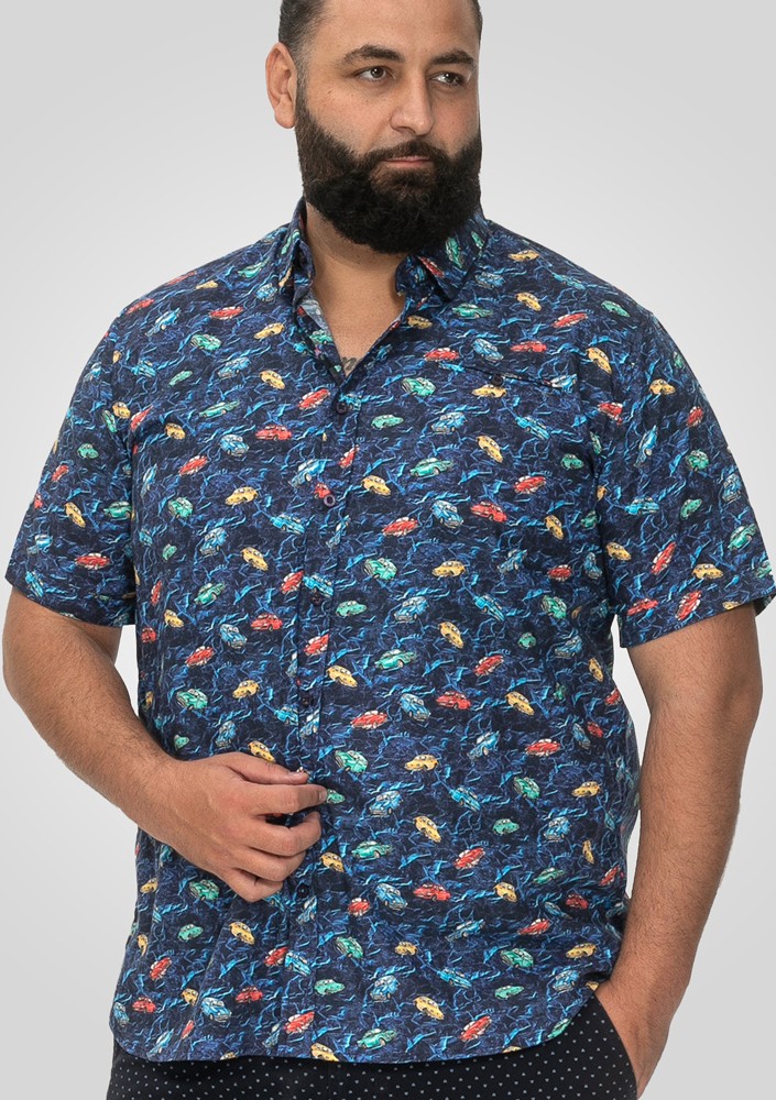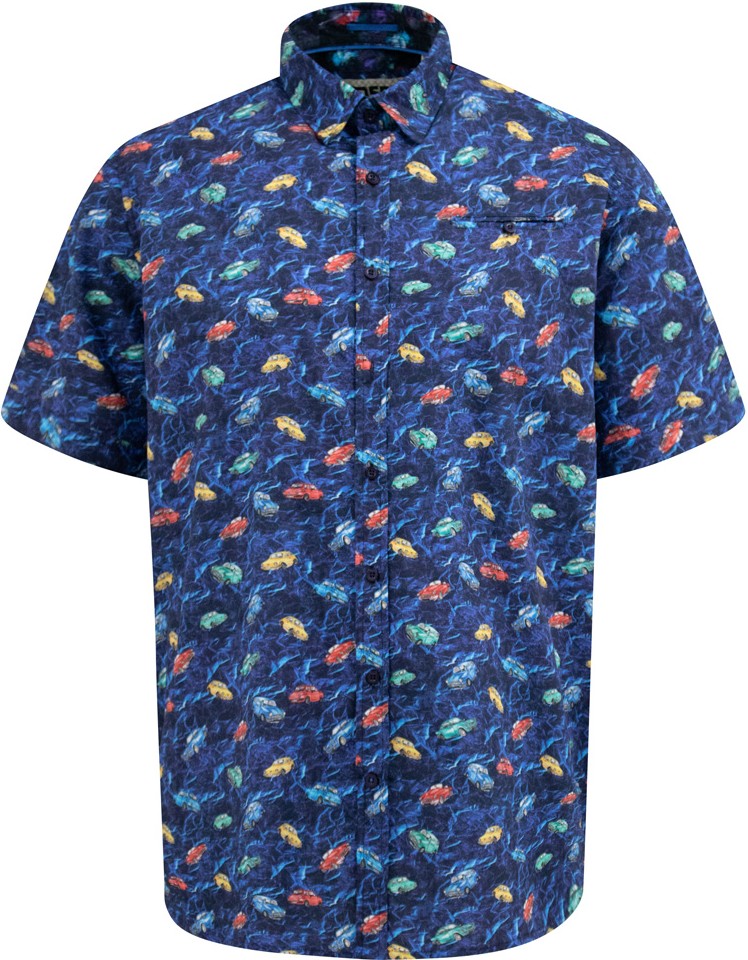 Größen-Ratgeber - D555 Hartlepool Short Sleeve Vintage Car AOP Stretch Shirt Blue