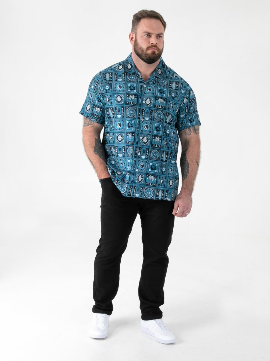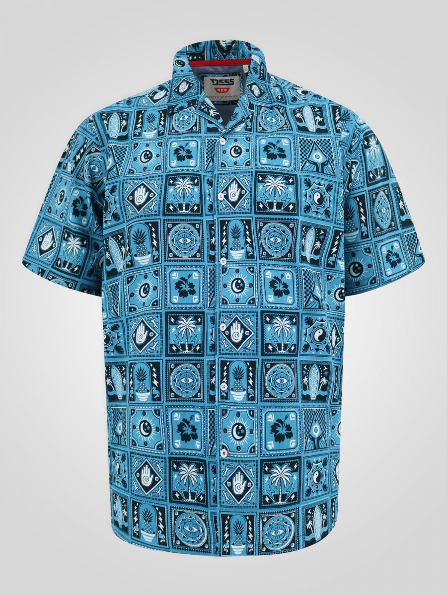 Größen-Ratgeber - D555 Hawkins Printed Cuban Collar Resort Short Sleeve Shirt Teal