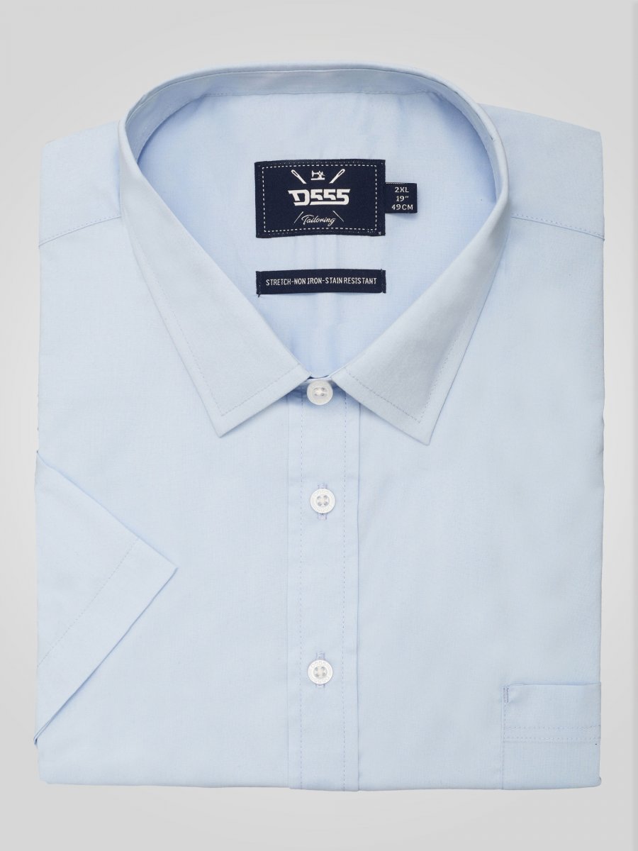 Größen-Ratgeber - D555 Lucas Fleckenabweisendes Bügelfreies Stretch-Kurzarmhemd Hellblau