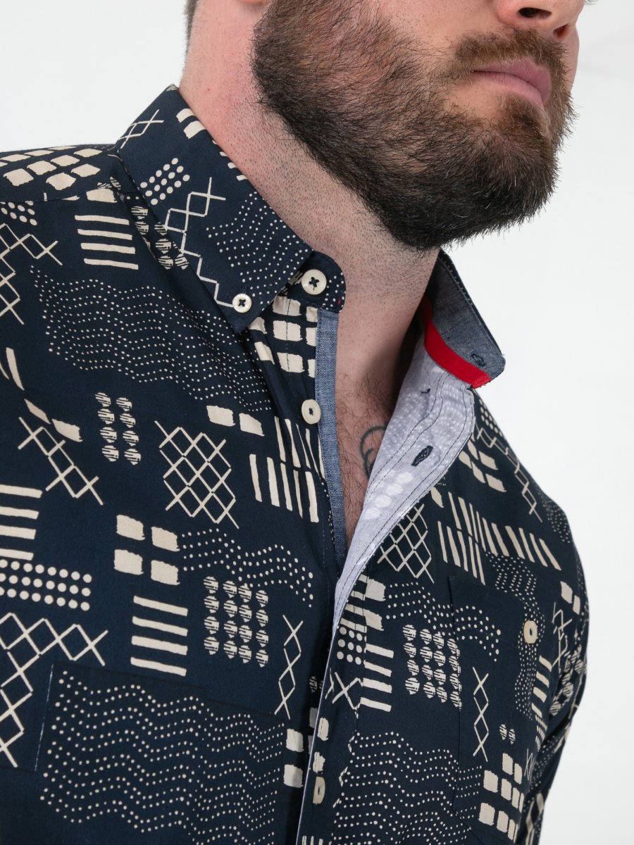 Größen-Ratgeber - D555 Rick Geometric Print Short Sleeve Shirt Navy