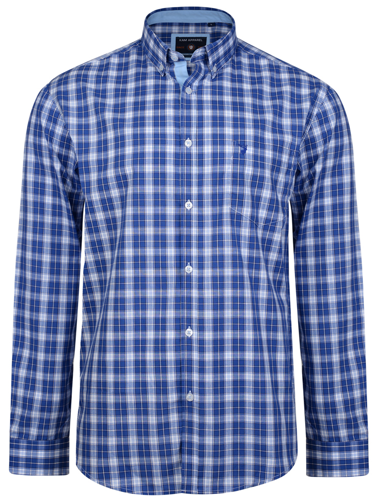 Kam Jeans 6155 Long Sleeve Check Shirt Blue