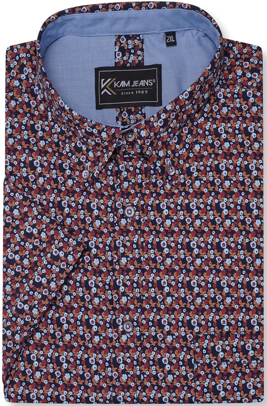 Größen-Ratgeber - Kam Jeans 6326 Mini Floral Print Short Sleeve Shirt Navy