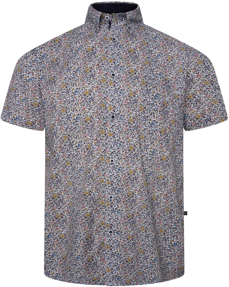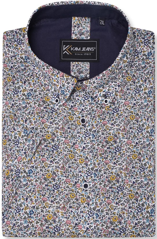 Kam Jeans 6329 Mini Floral Print Short Sleeve Shirt Grey