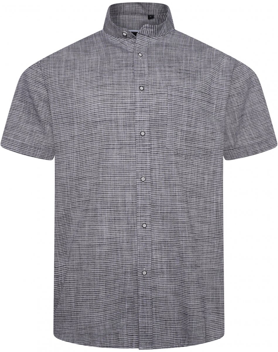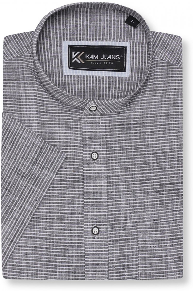 Kam Jeans 6334 Striped Grandad Short Sleeve Shirt Charcoal