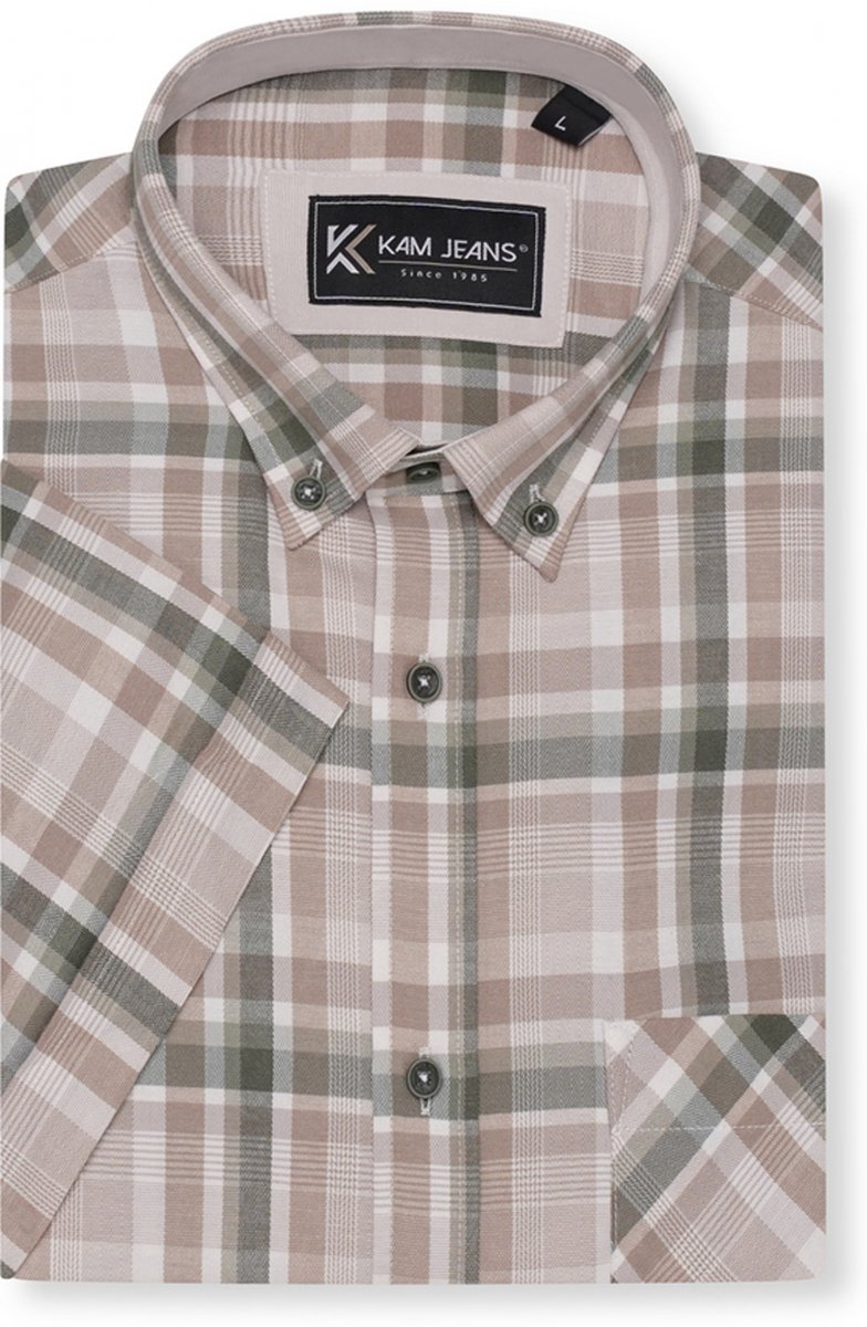 Größen-Ratgeber - Kam Jeans 6339 Checked Short Sleeve Shirt Beige