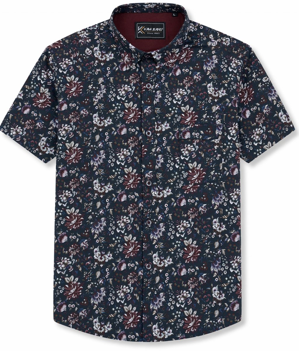 Kam Jeans 6387 Floral Print Short Sleeve Shirt Navy