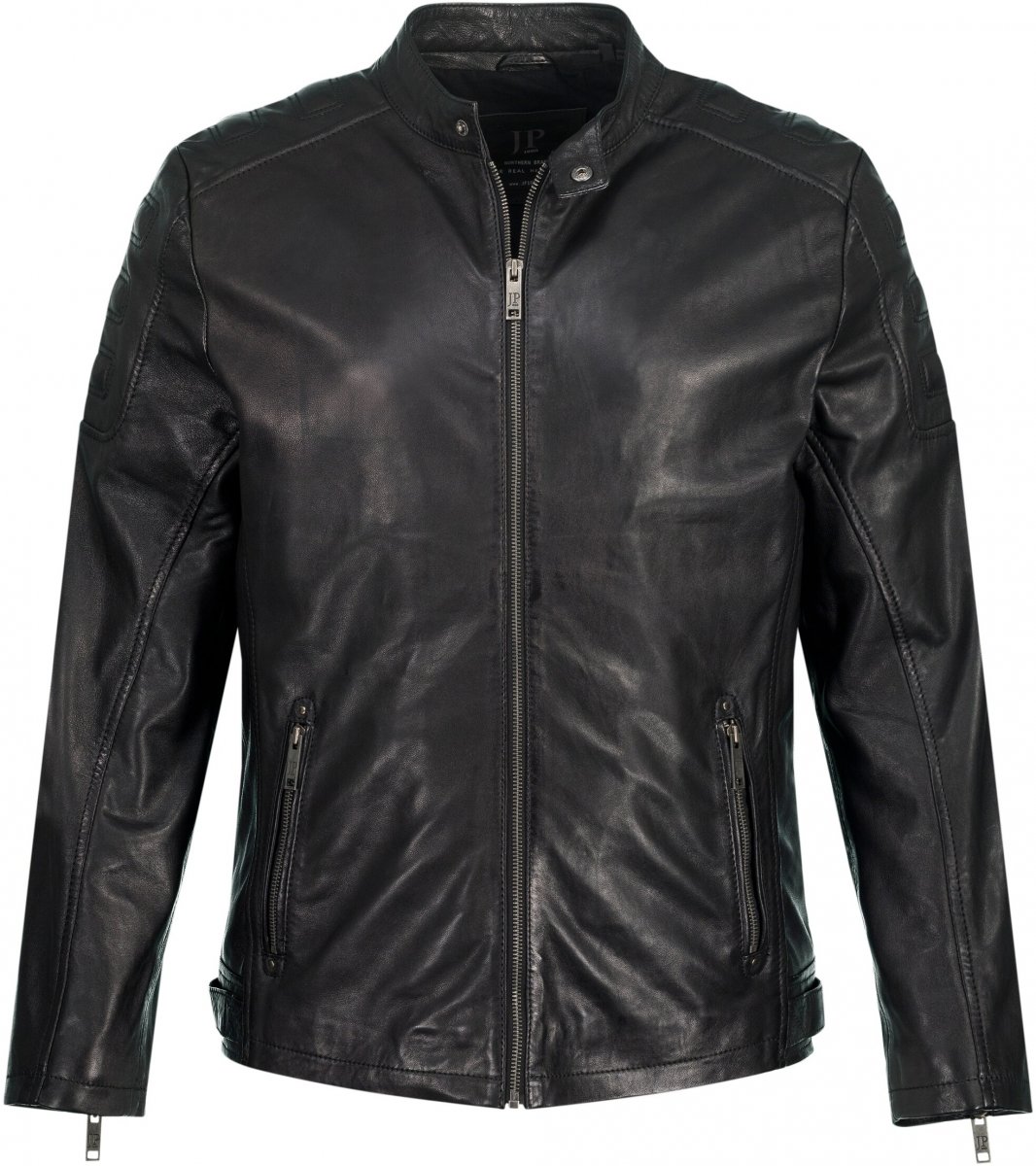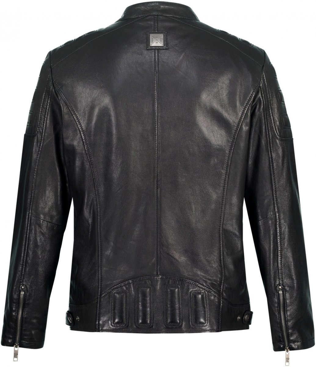 JP1880 Classic Biker Style Leather Jacket Black