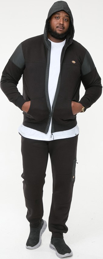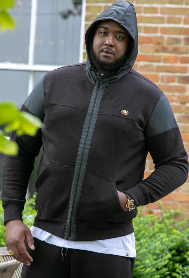 Größen-Ratgeber - D555 DEAN Couture Zip Through Hoody With Woven Contrast Fabric Trim Black