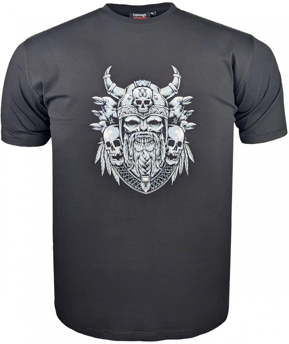 Größen-Ratgeber - Espionage T441 Viking Skull Print T-Shirt Black