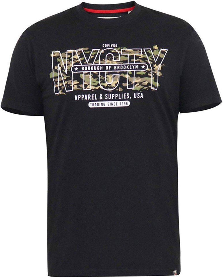Größen-Ratgeber - D555 EDWALTON NYCTY Camo Printed Crew Neck T-Shirt Washed Black