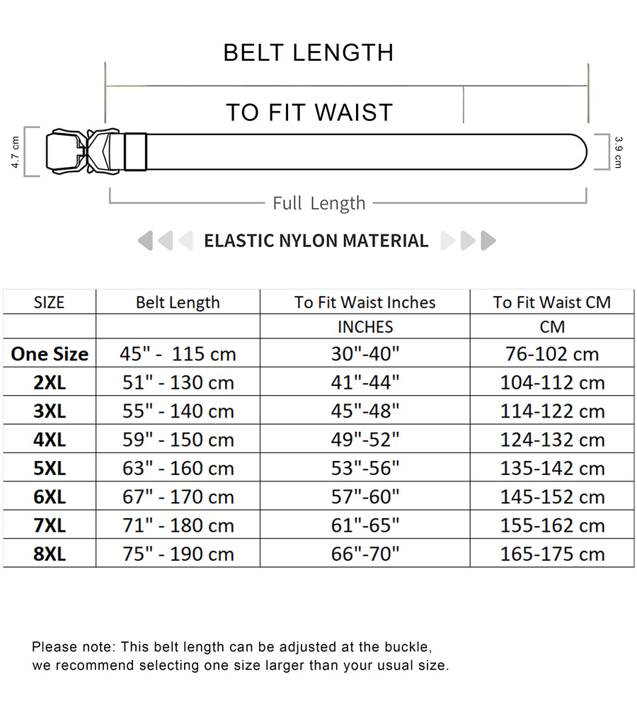 Größen-Ratgeber - D555 Dale Tactical Stretch Webbing Belt with Heavy Duty Quick Release Buckle Khaki