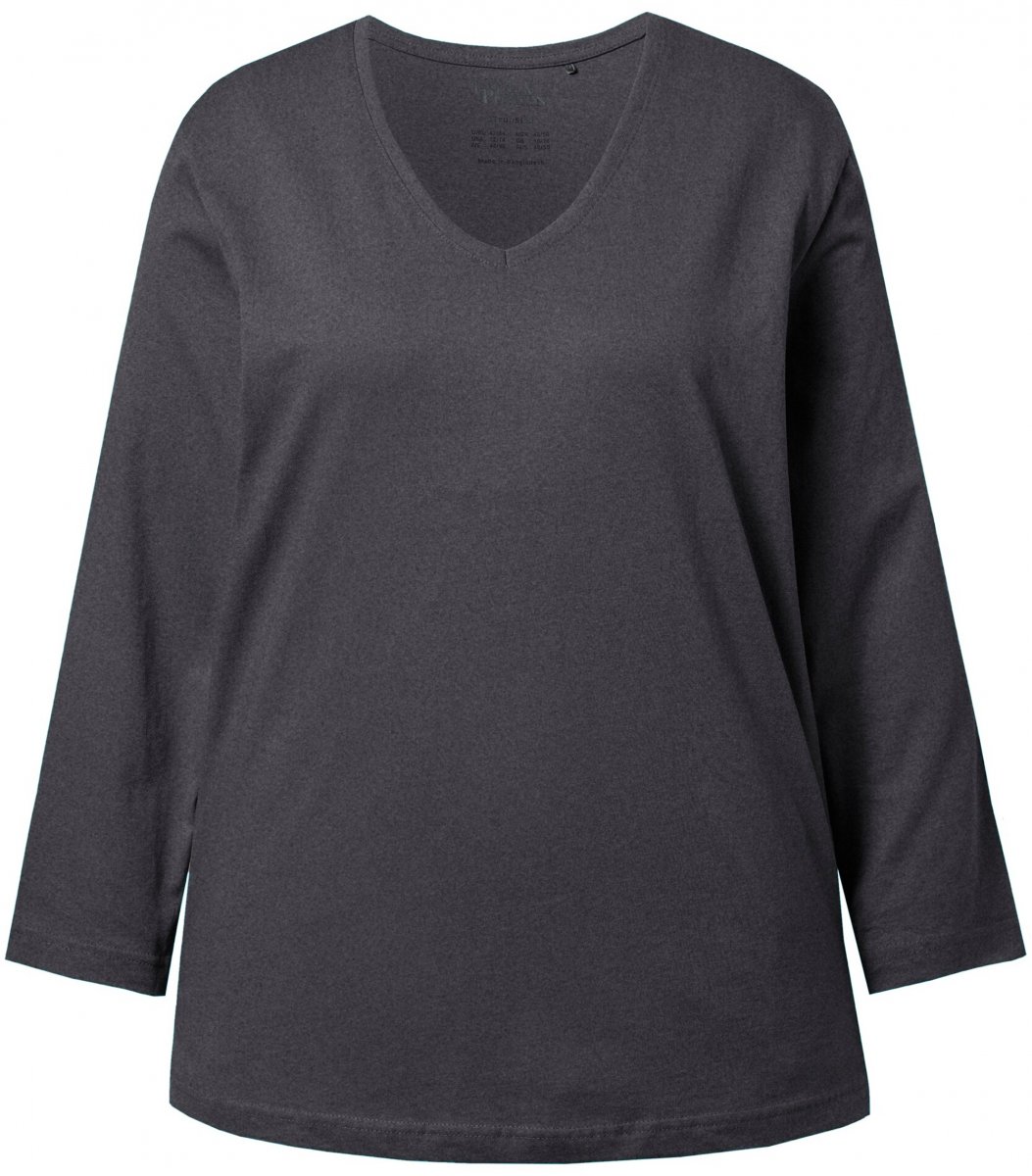 Größen-Ratgeber - Ulla Popken Back To Basics V-Neck Relaxed Fit Cotton Tee Charcoal Grey Melange