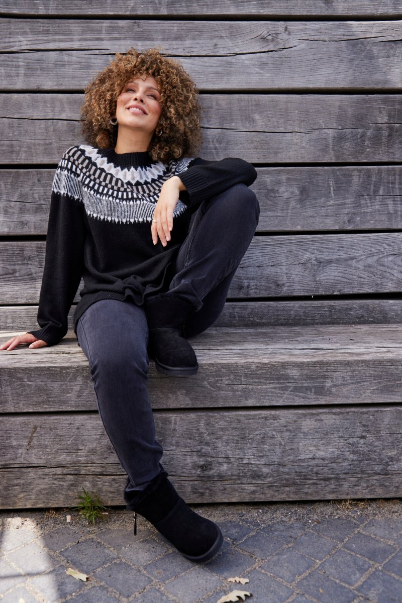 Größen-Ratgeber - Ulla Popken Norwegian-Inspired Long Sleeve Knit Sweater Black