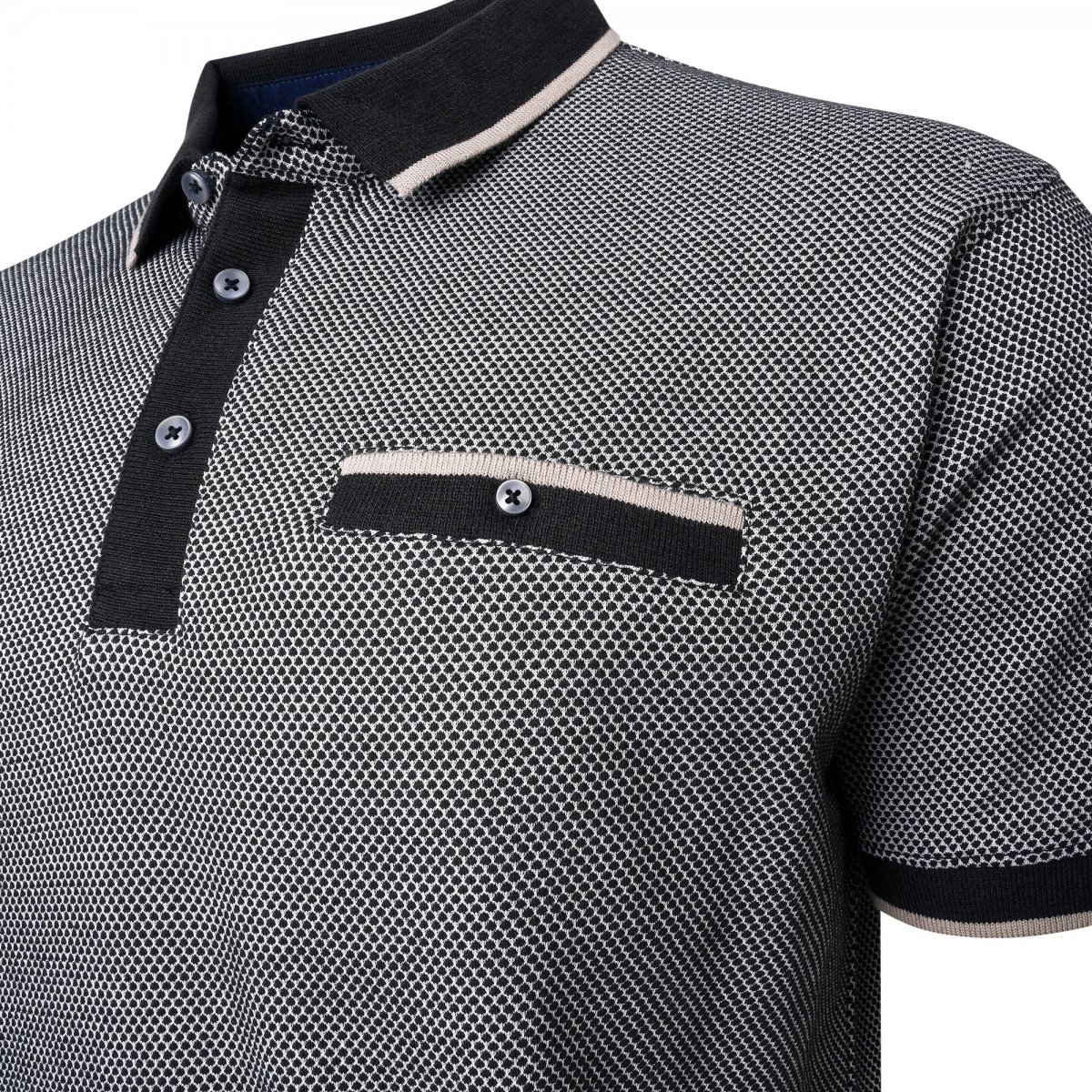 Größen-Ratgeber - Kam Jeans 5525 Raised Dobby Fabric Polo with Tipping Black